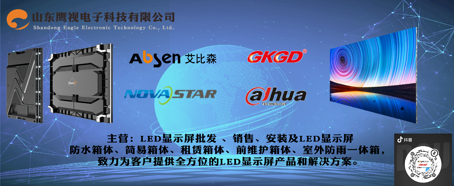 山東鷹視電子科技有限公司成立于2006年,是一家私營獨資企業(yè),注冊資本1000萬,代理品牌:艾比森、高科、諾瓦星云和大華,公司設(shè)立臨沂總部、濟南分公司、河北分公司和箱體生產(chǎn)廠。公司總部坐落在江北最大物流城,又是中國第二大批發(fā)市場山東臨沂,其地理位置優(yōu)越,交通便利,公司建筑面積5000多平方,員工80余人,擁有完善的售前,售后服務(wù)體系,公司業(yè)務(wù)遍及山東省內(nèi)各地級市。自有箱體生產(chǎn)廠,專業(yè)從事顯示屏箱體生產(chǎn),自產(chǎn)自銷,規(guī)格齊全,包括LED顯示屏防水箱體、簡易箱體、租賃箱體、前維護箱體、室外防雨一體箱,生產(chǎn)設(shè)計免焊易結(jié)構(gòu),使安裝更簡潔高效,致力為客戶提供全方位的LED顯示屏產(chǎn)品和解決方案。鷹視人員堅守“誠信 感恩 負責(zé)任”的核心價值觀,秉承“謙卑 忠誠 協(xié)作 擔(dān)當 積極主動 堅韌不拔”的企業(yè)精神,始終以精誠團結(jié)、追求卓越、為客戶提供優(yōu)質(zhì)產(chǎn)品和專業(yè)服務(wù)。 .